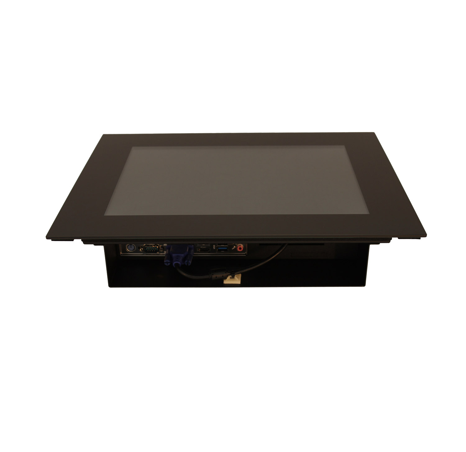 Description: 17 inch panel pc with Intel N100 Quad core upto 3.4Ghz Ghz processor with or without touchscreen. Unit made of black powder coated metal with mini itx format computer for hufter proof and long life use.