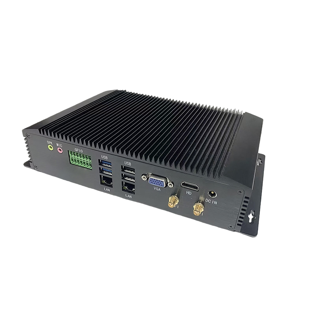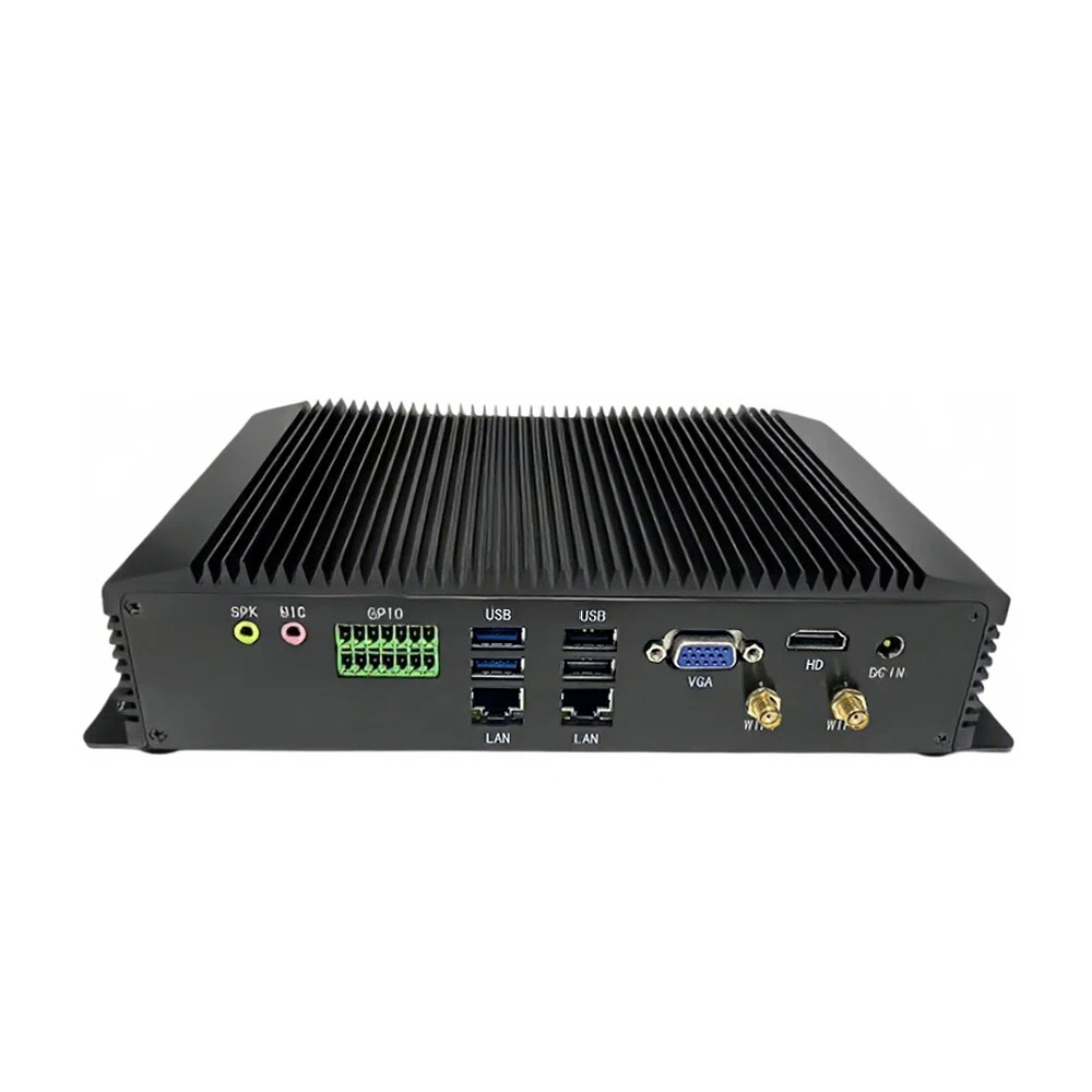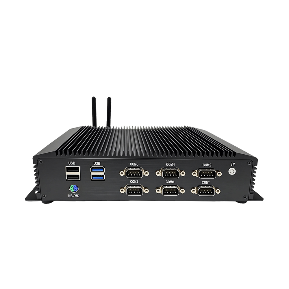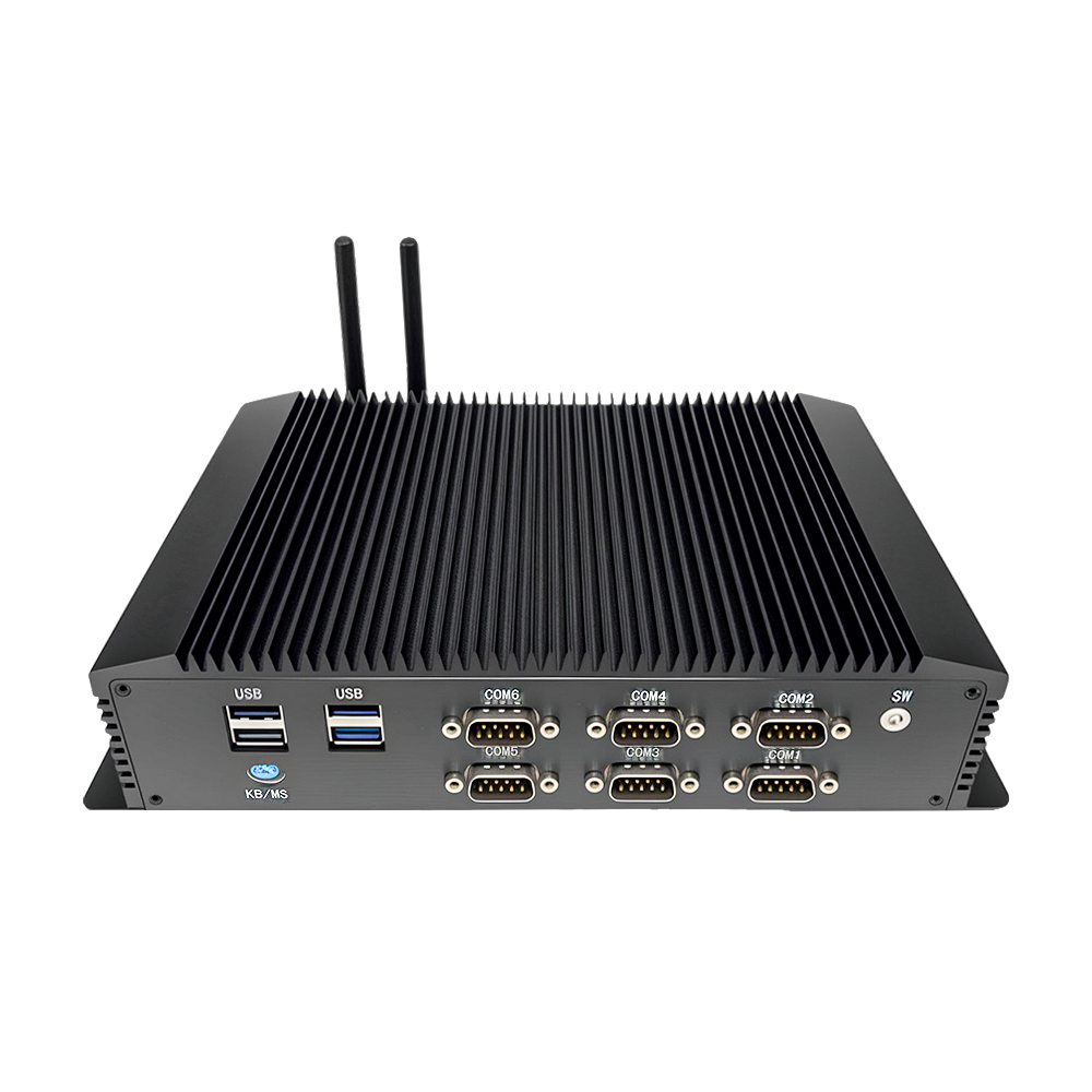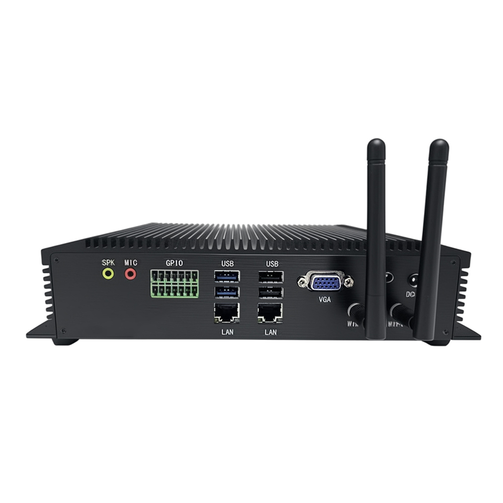 Omschrijving: Robuuste passief gekoelde mini pc, model V1-2 met Intel i3-2 Ghz of met Intel i7-4 Ghz processor. Deze van aluminium vervaardigde mini pc is gebouwd op duurzaamheid met veel aansluitingsmogelijkheden: Voorzijde: Aan/Uit knop, 2xUSB2 2xUSB3, 1x PS/2. Achterzijde: 1x mic, 1x spk.,1x GPIO, 6xCOM, 2xGb LAN, 2xUSB2 2xUSB3, 1x VGA, 1x HDMI, 2x Ant., 12Vdc input. Maatvoering: 230x175x50mm.